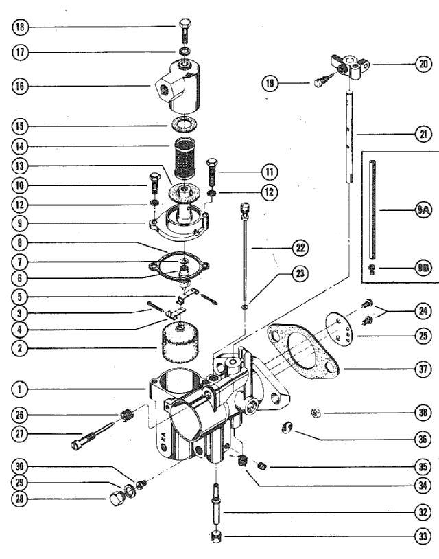 | 1 | Art.: 1333-5818 карбюротор в сборе (UNITED STATES 4141000 THRU 4280269 AUSTRALIA 8029515 THRU 8030089 BELGIUM 9082514 THRU 9100588 CANADA 7051983 THRU 7060607)Деталей в узле: 2 снято с производства 1 | Art.: 1333-5921 карбюротор в сборе (UNITED STATES 4280270 AND UP AUSTRALIA NONE BUILT BELGIUM 9100589 AND UP CANADA 7060608 AND UP)Деталей в узле: 2 снято с производства 2 | Art.: поплавок в сборе Деталей в узле: 2 цена по запросу 3 | Art.: - PIN, FLOAT LEVER PINION Деталей в узле: 4 4 | Art.: - рычаг поплавка нижний Деталей в узле: 2 5 | Art.: - рычаг поплавка верхний Деталей в узле: 2 6 | Art.: впускная игла, седло и прокладка Деталей в узле: 2 цена по запросу 7 | Art.: - Прокладка впускного седла Деталей в узле: 2 8 | Art.: - прокладка крышки поплавковой камеры Деталей в узле: 2 9 | Art.: 1399-1133 крышка поплавковой камеры (UNITED STATES 4141000 THRU 4280269 AUSTRALIA 8029515 THRU 8030089 BELGIUM 9082514 THRU 9100588 CANADA 7051983 THRU 7060607)Деталей в узле: 2 9 | Art.: 1399-6223 крышка поплавковой камеры (UNITED STATES 4280270 AND UP AUSTRALIA NONE BUILT BELGIUM 9100589 AND UP CANADA 7060608 AND UP)Деталей в узле: 2 снято с производства 9A | Art.: - HOSE, ECONOMIZER (UNITED STATES 4280270 AND UP AUSTRALIA NONE BUILT BELGIUM 9100589 AND UP CANADA 7060608 AND UP)Деталей в узле: 2 9B | Art.: JET, ECONOMIZER (.086) (UNITED STATES 4280270 AND UP AUSTRALIA NONE BUILT BELGIUM 9100589 AND UP CANADA 7060608 AND UP)Деталей в узле: 2 цена по запросу 10 | Art.: 10-52195 винт крышки поплавковой камеры короткий Деталей в узле: 2 снято с производства 11 | Art.: 10-52196 винт поплавковой камеры длинный Деталей в узле: 2 снято с производства 12 | Art.: 13-26995 стопорная шайба винта крышки поплавковой камеры Деталей в узле: 4 13 | Art.: 27-25851 прокладка крышки фильтра большая Деталей в узле: 2 14 | Art.: 1399-3938 Экран фильтра Деталей в узле: 2 снято с производства 15 | Art.: 27-25849 прокладка крышки фильтра маленькая Деталей в узле: 2 16 | Art.: 1399-1135 крышка фильтра Деталей в узле: 2 снято с производства 17 | Art.: - прокладка винта крышки фильтра Деталей в узле: 2 18 | Art.: - SCREW, STRAINER COVER FASTENING Деталей в узле: 2 19 | Art.: винт фиксатора рычага дросселя Деталей в узле: 2 цена по запросу 20 | Art.: 1399-94 LEVER, THROTTLE STOP(SEE NOTE BELOW) Деталей в узле: 2 снято с производства 21 | Art.: 1399-2012 Вал дросселя Деталей в узле: 2 снято с производства 22 | Art.: - TUBE, IDLE Деталей в узле: 2 23 | Art.: - GASKET, IDLE TUBE Деталей в узле: 2 24 | Art.: - винт и стопорная шайба заслонки дросселя Деталей в узле: 4 25 | Art.: 1399-3392 дроссельная заслонка (UNITED STATES 4141000 THRU 4280269 AUSTRALIA 8029515 THRU 8030089 BELGIUM 9082514 THRU 9100588 CANADA 7051983 THRU 7060607)Деталей в узле: 2 снято с производства 25 | Art.: 1399-5812 SHUTTER, THRORRLE (UNITED STATES 4280270 AND UP AUSTRALIA NONE BUILT BELGIUM 9100589 AND UP CANADA 7060608 AND UP)Деталей в узле: 2 снято с производства 26 | Art.: - пружина винта регулировки холостого хода Деталей в узле: 2 27 | Art.: - винт регулировки холостого хода Деталей в узле: 2 28 | Art.: 10-28405 винт пробки канала главного топливного жиклера Деталей в узле: 2 снято с производства 29 | Art.: - прокладка винта пробки канала жиклера Деталей в узле: 2 30 | Art.: 1399-1459 JET, MAIN FUEL (.059) Деталей в узле: OPT. снято с производства 30 | Art.: 1399-1461 главный топливный жиклер (.061) Деталей в узле: OPT. снято с производства 30 | Art.: 1399-1465 JET, MAIN FUEL (.063) - STANDARD (UNITED STATES 4141000 THRU 4280269 AUSTRALIA 8029515 THRU 8030089 BELGIUM 9082514 THRU 9100588 CANADA 7051983 THRU 7060607)Деталей в узле: 2 снято с производства 30 | Art.: 1399-1465 JET, MAIN FUEL (.065) - STANDARD (UNITED STATES 4280270 AND UP AUSTRALIA NONE BUILT BELGIUM 9100589 AND UP CANADA 7060608 AND UP)Деталей в узле: OPT. снято с производства 32 | Art.: - главный распылитель Деталей в узле: 2 33 | Art.: 10-23178 винт пробки главного распылителя Деталей в узле: 2 снято с производства 34 | Art.: - Пружина возврата дроссельного вала Деталей в узле: 1 35 | Art.: 28845 винт пробки канала корпуса Деталей в узле: 2 снято с производства 36 | Art.: - WELCH PLUG, BODY CHANNEL Деталей в узле: 2 37 | Art.: 27-31402 GASLET. CARBURETOR FLANGE Деталей в узле: 2 38 | Art.: Гайка шпильки крепл