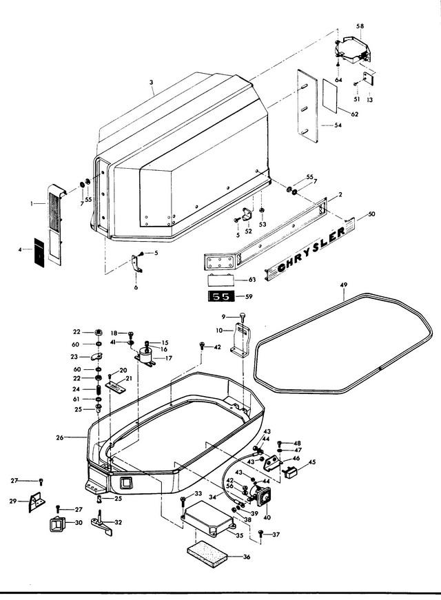 | 1 | Art.: PLATE, FRONT Деталей в узле: 1 снято с производства 2 | Art.: F366392 SIDE PLATE Деталей в узле: 2 снято с производства 3 | Art.: FS463712 крышка двигателя (W/ITEMS 6, 13, 52 & 58)Деталей в узле: 1 снято с производства 4 | Art.: FA466892 INSERT, FRONT PLATE (U.S.A., FOR ALTERNATOR MODELS)Деталей в узле: 1 снято с производства 5 | Art.: F1475 FILL HD SCREW, S.S., 10 - 24 X 1/2 Деталей в узле: 4 снято с производства 6 | Art.: FA366778 ENGINE COVER RETAINER, W/SCREWS AND NUTS Деталей в узле: 1 снято с производства 7 | Art.: F85735-1 SEAL, MEDALLION Деталей в узле: 24 снято с производства 9 | Art.: HEX HD CAP SCREW, 14 - 20 X 3/4 Деталей в узле: 2 цена по запросу 10 | Art.: F458774 BRACKET, REAR RETAINER Деталей в узле: 1 снято с производства 13 | Art.: F463864 RETAINER, TILT HANDLE Деталей в узле: 2 снято с производства 15 | Art.: F1647 HEX NUT, 8 - 32 Деталей в узле: 1 снято с производства 16 | Art.: F8056 SPRING LOCKWASHER Деталей в узле: 1 снято с производства 17 | Art.: 89-817760A2 соленоид воздушной заслонки Деталей в узле: 1 снято с производства 18 | Art.: HEX SLOT HD SCREW, 1/4 - 20 X 5/8 Деталей в узле: 2 снято с производства 20 | Art.: DRIVE SCREW, 2 X 3/16 Деталей в узле: 2 цена по запросу 21 | Art.: FA77395-5 IDENTIFICATION PLATE W/SCREWS, U.S.A. Деталей в узле: 1 снято с производства 22 | Art.: HEX NUT, S.S., 5/16 - 18 Деталей в узле: 2 цена по запросу 23 | Art.: F89777-1 кулачок защелки Деталей в узле: 1 снято с производства 24 | Art.: F183300 Пружина Деталей в узле: 1 снято с производства 25 | Art.: BEARING, LATCH SHAFT Деталей в узле: 2 цена по запросу 26 | Art.: F307038 SUPPORT PLATE Деталей в узле: 1 снято с производства 27 | Art.: PAN HD SCREW, 10 - 24 X 9/16 Деталей в узле: 3 29 | Art.: F311189-1 BUSHING, CABLE ENTRY Деталей в узле: 1 снято с производства 30 | Art.: BUSHING, ELECTRIC CABLE ENTRY Деталей в узле: 1 цена по запросу 32 | Art.: FA328763 COVER LATCH HANDLE W/SHAFT Деталей в узле: 1 снято с производства 33 | HEX HD SCREW, 1/4 - 20 X 1 Деталей в узле: 2 34 | Art.: F307683 WIRE, CIRCUIT BREAKER Деталей в узле: 1 снято с производства 35 | Art.: FA307779 BAFFLE, AIR INTAKE W/SILENCER Деталей в узле: 1 снято с производства 36 | Art.: F307860 впускной глушитель Деталей в узле: 1 снято с производства 37 | Art.: HEX HD SCREW, 1/4 - 20 X 3/4 Деталей в узле: 2 цена по запросу 38 | Art.: HEX NUT, S.S., 5/16 - 24 Деталей в узле: 2 цена по запросу 39 | Art.: SPRING LOCKWASHER Деталей в узле: 2 цена по запросу 40 | Art.: реле стартера Деталей в узле: 1 снято с производства 41 | Art.: SPRING LOCKWASHER Деталей в узле: 2 цена по запросу 42 | Art.: HEX HD SCREW, 1/4 - 20 X 3/4 Деталей в узле: 8 цена по запросу 43 | Art.: HEX NUT, 10 - 32 Деталей в узле: 5 цена по запросу 44 | Art.: SPRING LOCKWASHER Деталей в узле: 3 цена по запросу 45 | Art.: CIRCUIT BREAKER Деталей в узле: 1 снято с производства 46 | Art.: CIRCUIT BREAKER BRACKET Деталей в узле: 1 цена по запросу 47 | Art.: PLAIN WASHER Деталей в узле: 2 цена по запросу 48 | Art.: PAN HEAD SCREW, 10 - 24 X 9/16 Деталей в узле: 2 49 | Art.: F85756 SUPPORT PLATE PACKING Деталей в узле: 1 снято с производства 50 | Art.: F463366 NAME PLATE, "CHRYSLER" Деталей в узле: 2 снято с производства 51 | Art.: F1728 PAN HD SCREW, 10 X 3/8 Деталей в узле: 4 снято с производства 52 | Art.: FA458480 ENGINE COVER RETAINER W/SCREWS & NUT Деталей в узле: 1 снято с производства 53 | Art.: HEX NUT, 10 - 24 Деталей в узле: 4 цена по запросу 54 | Art.: F433180-1 TRIM, REAR Деталей в узле: 1 снято с производства 55 | Art.: F1753 FASTENER Деталей в узле: 24 снято с производства 56 | Art.: PLAIN WASHER Деталей в узле: 1 цена по запросу