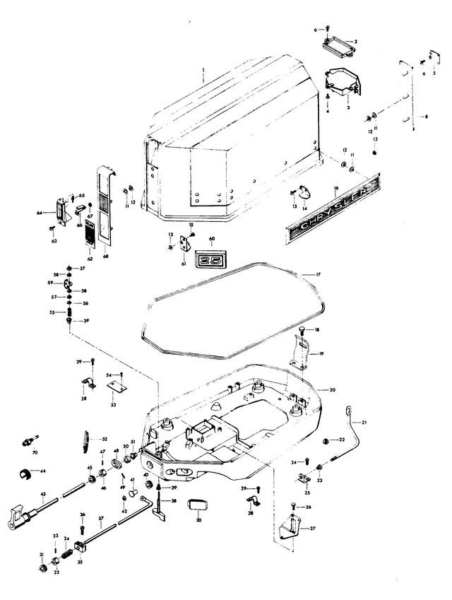 | 1 | Art.: FA458712 ENGINE COVER W/FRONT AND REAR RETAINERS Деталей в узле: 1 снято с производства 2 | Art.: BAFFLE, TILT HANDLE Деталей в узле: 1 цена по запросу 3 | Art.: ручка наклона Деталей в узле: 1 снято с производства 4 | Art.: F2025 PAN HD SCREW, 10 X 5/8 Деталей в узле: 1 снято с производства 5 | Art.: F463864 RETAINER, TILT HANDLE Деталей в узле: 2 снято с производства 6 | Art.: F1728 PAN HD SCREW, 10 X 3/8 Деталей в узле: 6 снято с производства 7 | Art.: F458142 FITTING, HANDLE DRAIN Деталей в узле: 1 снято с производства 8 | Art.: -504180 TRIM, REAR Деталей в узле: 1 11 | Art.: F85735-1 Уплотнение Деталей в узле: 23 снято с производства 12 | Art.: F1753 FASTENER Деталей в узле: 23 снято с производства 13 | Art.: HEX NUT Деталей в узле: 4 14 | Art.: FA458480 RETAINER, ENGINE COVER REAR W/SCREWS AND NUTS Деталей в узле: 1 снято с производства 15 | Art.: F1475 FILL HD SCREW, 10 - 24 X 1/2 Деталей в узле: 4 снято с производства 16 | Art.: -4583661 PLATE, NAME "CHRYSLER" Деталей в узле: 2 17 | Art.: F85756 PACKING, ENGINE COVER Деталей в узле: 1 снято с производства 18 | Art.: F1922 HEX HD SCREW, 1/4 - 20 X 5/8 Деталей в узле: 2 снято с производства 19 | Art.: F461774 BRACKET, RETAINER REAR Деталей в узле: 1 снято с производства 20 | Art.: F458038-2 SUPPORT PLATE Деталей в узле: 1 снято с производства 21 | Art.: F458503 тяга диффузора Деталей в узле: 1 снято с производства 22 | Art.: F1632 PLASTI-PLUG Деталей в узле: 1 снято с производства 23 | Art.: F183818 BEARING, CHOKE ROD Деталей в узле: 1 снято с производства 24 | Art.: F1760 PAN HD SCREW, 10 - 24 X 3/8 Деталей в узле: 2 снято с производства 25 | Art.: F324993 BRACKET, CHOKE ROD BEARING Деталей в узле: 1 снято с производства 26 | Art.: HEX CAP SCREW, 1/4 - 20 X 1/2 Деталей в узле: 2 цена по запросу 27 | Art.: F458371 BRACKET, REMOTE THROTTLE CABLE Деталей в узле: 1 снято с производства 28 | Art.: F154317 CLAMP, REMOTE CABLE Деталей в узле: 2 снято с производства 29 | Art.: SLOTTED FILL HD SCREW W/SPRING LOCKWASHER, 10 - 24 X 5/8 Деталей в узле: 4 снято с производства 30 | Art.: F324840-1 GROMMET, REMOTE THROTTLE CABLE Деталей в узле: 1 снято с производства 31 | Art.: F183504 GROMMET, MAGNETO CONTROL SHAFT Деталей в узле: 1 снято с производства 32 | Art.: FA343178 RETAINER, MAGNETO CONTROL SHAFT W/SET SCREW Деталей в узле: 1 снято с производства 33 | Art.: HEX SOCKET HEADLESS SET SCREW, 1/4 - 28 X 3/16 Деталей в узле: 1 34 | Art.: F183300 SPRING, MAGNETO CONTROL SHAFT Деталей в узле: 1 снято с производства 35 | Art.: F324689 BEARING, MAGNETO CONTROL SHAFT Деталей в узле: 1 снято с производства 36 | Art.: F1087 FILL HD SCREW, 10 - 24 X 7/8 Деталей в узле: 2 снято с производства 37 | Art.: FA458838 MAGNETO CONTROL SHAFT Деталей в узле: 1 снято с производства 38 | Art.: FA413469 COVER LATCH HANDLE W/SHAFT Деталей в узле: 1 снято с производства 39 | Art.: BEARING, LATCH SHAFT Деталей в узле: 2 цена по запросу 40 | Art.: F53840-2 резиновая втулка тяги диффузора Деталей в узле: 1 снято с производства 41 | Art.: F286547 головка ручки воздушной заслонки Деталей в узле: 1 снято с производства 42 | Art.: F458677 INSERT, CHOKE KNOB Деталей в узле: 1 снято с производства 43 | Art.: F2A504614 KNOB, GEAR SHIFT W/SHAFT AND INDICATOR Деталей в узле: 1 снято с производства 44 | Art.: INDICATOR, GEAR SHIFT Деталей в узле: 1 снято с производства 45 | Art.: F24623-1 GROMMET, GEAR SHIFT Деталей в узле: 1 снято с производства 46 | Art.: FA343178 RETAINER, GEAR SHIFT SHAFT W/SET SCREW Деталей в узле: 1 снято с производства 47 | Art.: HEX SOCKET HEADLESS SET SCREW, 1/4 - 28 X 3/16 Деталей в узле: 1 48 | Art.: F504621 LEVER, GEAR SHIFT CONTROL Деталей в узле: 1 снято с производства 49 | Art.: F1836 SPRING PIN Деталей в узле: 1 цена по запросу