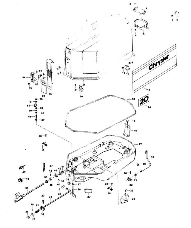 | 1 | Art.: 100-818015A1 крышка двигателя (W/ILLUS. 9, 10, 11 AND 60 ORIGINAL FORCE P/N S 529712-1)Деталей в узле: 1 снято с производства 2 | Art.: F2066 PAN HD SCREW, 10 X 7/16 Деталей в узле: 6 снято с производства 3 | Art.: F458245-1 BAFFLE, TILT HANDLE Деталей в узле: 1 снято с производства 4 | Art.: F2025 PAN HD SCREW, 10 X 5/8 Деталей в узле: 1 снято с производства 5 | Art.: 817842A1 ручка наклона (W/LITERATURE ORIGINAL FORCE P/N A 513269-1)Деталей в узле: 1 снято с производства 6 | Art.: F463864 RETAINER, TILT HANDLE Деталей в узле: 2 снято с производства 7 | Art.: F85735-1 Уплотнение Деталей в узле: 2 снято с производства 8 | Art.: F1753 FASTENER Деталей в узле: 2 снято с производства 9 | Art.: HEX NUT Деталей в узле: 4 10 | Art.: FA458480 RETAINER, ENGINE COVER - REAR (W/ILLUS. 9 AND 11)Деталей в узле: 1 снято с производства 11 | Art.: F1475 FILL HD SCREW, 10 - 24 X 1/2 Деталей в узле: 4 снято с производства 12 | Art.: FA603397 DECAL, ENGINE COVER - PORT (W/LITERATURE)Деталей в узле: 1 снято с производства 13 | Art.: F85756 PACKING, ENGINE COVER Деталей в узле: 1 снято с производства 14 | Art.: FA602386 DECAL NUMERAL 20 (W/LITERATURE)Деталей в узле: 2 снято с производства 15 | Art.: F1922 HEX HD SCREW, 1/4 - 20 X 5/8 Деталей в узле: 2 снято с производства 16 | Art.: F461774 BRACKET, RETAINER - REAR Деталей в узле: 1 снято с производства 17 | Art.: F458038-2 SUPPORT PLATE Деталей в узле: 1 снято с производства 18 | Art.: F458503 тяга диффузора Деталей в узле: 1 снято с производства 19 | Art.: F1632 PLASTI-PLUG Деталей в узле: 1 снято с производства 20 | Art.: F1760 PAN HD SCREW, 10 - 24 X 3/8 Деталей в узле: 2 снято с производства 21 | Art.: F183818 BEARING, CHOKE ROD Деталей в узле: 1 снято с производства 22 | Art.: F324993 BRACKET, CHOKE ROD BEARING Деталей в узле: 1 снято с производства 23 | Art.: HEX CAP SCREW, 1/4 - 20 X 1/2 Деталей в узле: 2 цена по запросу 24 | Art.: F458371 BRACKET, REMOTE THROTTLE CABLE Деталей в узле: 1 снято с производства 25 | Art.: F154317 CLAMP, REMOTE CABLE Деталей в узле: 2 снято с производства 26 | Art.: SLOTTED FILL HD SCREW W/SPRING LOCKWASHER, 10 - 24 X 5/8 Деталей в узле: 4 снято с производства 27 | Art.: F324840-1 GROMMET, REMOTE THROTTLE CABLE (HAND START) Деталей в узле: 2 снято с производства 28 | Art.: F183504 GROMMET, MAGNETO CONTROL SHAFT Деталей в узле: 1 снято с производства 29 | Art.: FA343178 RETAINER, MAGNETO CONTROL SHAFT (W/ILLUS. 30)Деталей в узле: 1 снято с производства 30 | Art.: HEX SOCKET HEADLESS SET SCREW, 1/4 - 28 X 3/16 Деталей в узле: 1 31 | Art.: F183300 SPRING, MAGNETO CONTROL SHAFT Деталей в узле: 1 снято с производства 32 | Art.: F324689 BEARING, MAGNETO CONTROL SHAFT Деталей в узле: 1 снято с производства 33 | Art.: F1087 FILL HD SCREW, 10 - 24 X 7/8 Деталей в узле: 2 снято с производства 34 | Art.: FA458838 MAGNETO CONTROL SHAFT W/EYELET Деталей в узле: 1 снято с производства 35 | Art.: F458677 INSERT, CHOKE KNOB Деталей в узле: 1 снято с производства 36 | Art.: FA413469 COVER LATCH HANDLE W/SHAFT Деталей в узле: 1 снято с производства 37 | Art.: BEARING, LATCH SHAFT Деталей в узле: 2 цена по запросу 38 | Art.: F24623-1 GROMMET, GEAR SHIFT CHOKE ROD (HAND START) Деталей в узле: 2 снято с производства 39 | Art.: F286547 головка ручки воздушной заслонки Деталей в узле: 1 снято с производства 40 | Art.: F1836 SPRING PIN Деталей в узле: 1 цена по запросу