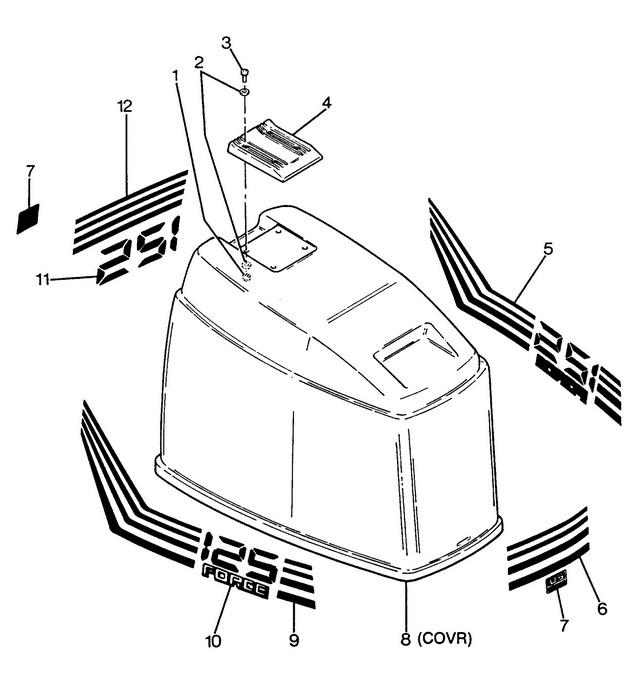| 1 | Art.: STOP NUT, 1/4 - 20 Деталей в узле: 4 цена по запросу 2 | Art.: шайба Деталей в узле: 8 цена по запросу 3 | Art.: F2143 HEX SOC. HD. SCREW, 1/4 - 20 X 1 S.S. Деталей в узле: 4 4 | HANDLE, TILT Деталей в узле: 1 снято с производства 5 | Art.: FX686397 DECAL, PORT Деталей в узле: 1 снято с производства 6 | Art.: FX685892 DECAL, FRONT Деталей в узле: 1 снято с производства 7 | Art.: DECAL, "US MARINE" Деталей в узле: 2 цена по запросу 8 | ENGINE COVER, (WITHOUT PAINT, DECALS OR HARDWARE) Деталей в узле: 1 |