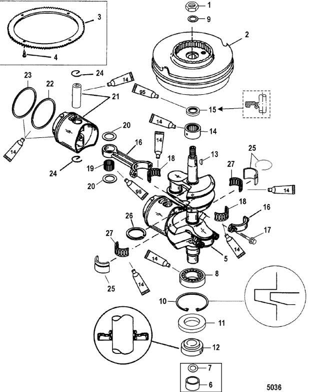 2 | Art.: маховик ((Seapro/Marathon))Деталей в узле: 1 3 | Art.: 43-99301 зубчатое кольцо ((Electric))Деталей в узле: 1 4 | Art.: 10-88190313 винт (M5 x 13) ((Electric))Деталей в узле: 4 5 | Art.: Коленчатый вал в сборе Деталей в узле: 1 6 | Art.: 818630A1 втулка Деталей в узле: 1 7 | Art.: -NSS не продается по отдельности, уплотнительное кольцо Деталей в узле: 1 8 | Art.: 30-41341 Шариковый подшипник Деталей в узле: 1 9 | Art.: 12-824451 шайба (0.610 внутренний диамтер x 0.890 внешний диаметр x 0.062) Деталей в узле: 1 10 | Art.: 53-42132 стопорное кольцо Деталей в узле: 1 11 | Art.: 12-13031 шайба Деталей в узле: 1 12 | Art.: 26-125661 Нижний сальник Деталей в узле: 1 13 | Art.: 28-20094 сегментная шпонка Деталей в узле: 1 14 | Art.: 31-878158 роликовый подшипник Деталей в узле: 1 15 | Art.: 26-125671 Верхний сальник Деталей в узле: 1 16 | Art.: 637-8477A2 шатун в сборе Деталей в узле: 2 17 | Art.: 10-823460 Винт (M5 x 16) Деталей в узле: 4 цена по запросу