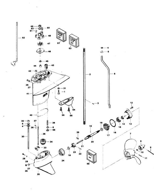 34 | Art.: F2A458266 GEAR, BEVEL PINION ASSEMBLY W/BEARING Деталей в узле: 1 снято с производства 35 | Art.: GEAR SHIFT ROD LOWER Деталей в узле: 1 снято с производства 36 | Art.: F1015 шплинт Деталей в узле: 1 37 | Art.: F85372 PIN, GEAR SHIFT ROD LOWER Деталей в узле: 1 38 | Art.: STUD, SHORT Деталей в узле: 1 цена по запросу 39 | Art.: YOKE, SHIFT ARM Деталей в узле: 1 цена по запросу 40 | Art.: уплотнение корпуса редуктора Деталей в узле: 1 41 | Art.: FA502554 GEAR HOUSING UPPER (W/ITEMS 26, 27, 42, 43, 44, 45, 38, 54 AND 55)Деталей в узле: 1 снято с производства 42 | Art.: SEAL, SHIFT ROD LOWER Деталей в узле: 1 43 | Art.: SCREEN, WATER INLET Деталей в узле: 1 44 | Art.: F458057 BEARING, DRIVESHAFT UPPER Деталей в узле: 1 снято с производства 45 | Art.: F458307 SEAL, DRIVESHAFT Деталей в узле: 1 снято с производства 46 | Art.: WATER PUMP BACK PLATE Деталей в узле: 1 цена по запросу 47 | Art.: WATER PUMP IMPELLER Деталей в узле: 1 цена по запросу 48 | Art.: FA513060 WATER PUMP BODY (W/ITEM 49, 50 AND 53)Деталей в узле: 1 снято с производства 49 | Art.: F458736 уплотнение водяного насоса Деталей в узле: 1 снято с производства 50 | Art.: FA510914 SEAL, INLET WATER LINE LOWER (W/LITERATURE)Деталей в узле: 1 снято с производства 51 | Art.: F2030 HEX HD CAP SCREW, 1/4 20 X 1 1/4 Деталей в узле: 4 52 | Art.: FA434616 GEAR SHIFT ROD INTERMEDIATE FOR STANDARD SHAFT MODELS Деталей в узле: 1 снято с производства 53 | Art.: F513388 DISC, WATER PUMP LOCATING Деталей в узле: 1 снято с производства 54 | Art.: EXHAUST SNOUT (W/LITERATURE)Деталей в узле: 1 снято с производства 55 | Art.: F2008 HEX HD M. SCREW, 1/4 - 20 X 7/8 Деталей в узле: 2 снято с производства 56 | Art.: FK1068 GEAR HOUSING SEAL KIT. (INCLUDES ALL ITEMS MARKED WITH A DOUBLE ASTERISK (**))Деталей в узле: 1 снято с производства 57 | Art.: FK1053 Комплект водяного насоса (W/ILLUSTRATIONS 3, 46, 47, 48 AND 51)Деталей в узле: 1 снято с производства 58 | Art.: LOCK NUT Деталей в узле: 1 цена по запросу 59 | Art.: FK1119 LONG LEG EXT. KIT. (INCLUDES ITEMS LISTED BELOW.)Деталей в узле: 1 снято с производства - | Art.: F503128 Вертикальный вал Деталей в узле: 1 снято с производства - | Art.: FA435616 ROD INTERMEDIATE SHIFT Деталей в узле: 1 снято с производства - | Art.: 1600-817896A2 LOWER HEAR HOUSING - COMPLETE (NOT SHOWN) (INCLUDES ALL ITEMS MARKED WITH AN ASTERISK (*) ORIGINAL FORCE P/N C 458054-1)Деталей в узле: 1 снято с производства - | Art.: F458845 MOTOR LEG Деталей в узле: 1 |