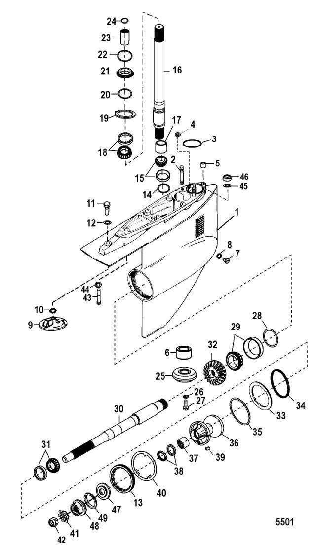 14 | Art.: 15-92914A1 комплект регулировочной прокладки Деталей в узле: AR 15 | конический роликовый подшипник в сборе Деталей в узле: 1 16 | Art.: Вертикальный вал в сборе Деталей в узле: 1 17 | Art.: 31-815901 обойма подшипника Деталей в узле: 1 18 | Art.: конический роликовый подшипник в сборе Деталей в узле: 1 19 | Art.: 14-86739 стопорная шайба Деталей в узле: 1 20 | Art.: 15-86749A1 комплект регулировочной прокладки Деталей в узле: AR 21 | проставка Деталей в узле: 1 22 | Art.: 25-20826 уплотнительное кольцо (2.230 x .139) Деталей в узле: 1 23 | Art.: 88243A3 муфта в сборе Деталей в узле: 1 24 | Art.: 53-88242 стопорное кольцо Деталей в узле: 1 25 | Art.: 43-41656T GEAR, (16/27), Pinion ((1.81:1 - 2.00:1 - 2.20:1 Ratio))Деталей в узле: 1 25 | Art.: 43-827304T GEAR, (18/25), Pinion ((1.50:1 - 1.65:1 Ratio))Деталей в узле: 1 26 | Art.: 12-805068 шайба ведущей шестерни Деталей в узле: 1 27 | Art.: 10-808027 винт ведущей шестерни Деталей в узле: 1 28 | Art.: 15-55499A1 регулировочная прокладка в сборе Деталей в узле: AR 29 | Art.: конический роликовый подшипник в сборе Деталей в узле: 1 30 | Art.: 44-62820T1 вал гребного винта Деталей в узле: 1 31 | Art.: конический роликовый подшипник в сборе Деталей в узле: 1 32 | Art.: 43-827303 приводная шестерня ((1.50:1 - 1.65:1 Ratio))Деталей в узле: 1 32 | Art.: 43-41657T приводная шестерня ((1.81:1 - 2.00:1 - 2.20:1 Ratio))Деталей в узле: 1 33 | Art.: 860323 упорное кольцо Деталей в узле: 1 34 | Art.: 23-66093T RING, Load Деталей в узле: 1 35 | Art.: 25-34821 уплотнительное кольцо Деталей в узле: 1 36 | Art.: подшипник опоры в сборе Деталей в узле: 1 36 | Art.: 863913A14 подшипник опоры в сборе ((SEACORE))Деталей в узле: 1 37 | Art.: 31-54042T роликовый подшипник Деталей в узле: 1 38 | Art.: 26-821092 Сальник Деталей в узле: 1 38 | Art.: 26-814242 SEAL, Oil, Fish-Line Cutter Деталей в узле: 1 39 | Art.: 28-30281 шпонка Деталей в узле: 1 40 | Art.: 14-54167 стопорная шайба Деталей в узле: 1 41 | Art.: 14-34817 стопорная шайба Деталей в узле: 1 42 | Art.: 11-82671127 PROP NUT, (1.00-14) Brass Деталей в узле: 1 43 | Art.: 10-90085 SCREW, (.4375-14 x 2.75) Деталей в узле: 1 44 | Art.: 13-47659 стопорная шайба (0.437) Деталей в узле: 1 45 | Art.: 12-861854 шайба (.453 x .750 x .032) нержавеющая сталь Деталей в узле: 2 46 | Art.: гайка (0.437-20) Деталей в узле: 2 47 | Art.: 55074T упорная втулка Деталей в узле: 1 48 | Art.: 12-55073A2 WASHER ASSEMBLY Деталей в узле: 1 49 | Art.: 12-55072 шайба Деталей в узле: 1 - | ANODE KIT, Aluminum (Bravo II) Деталей в узле: AR - | Art.: Набор уплотнений корпуса редуктора Деталей в узле: 1 - | Art.: 1641-8294A19 редуктор в сборе ((1.50:1 - 1.65:1 Ratio))Деталей в узле: 1 - | Art.: 1641-8294J02 редуктор в сборе ((SEACORE)(1.50:1 - 1.65:1 Ratio))Деталей в узле: 1 - | Art.: 1641-8294A16 редуктор в сборе ((1.81:1 - 2.00:1 - 2.20:1 Ratio))Деталей в узле: 1 - | Art.: 1641-8294J01 редуктор в сборе ((SEACORE)(1.81:1 - 2.00:1 - 2.20:1 Ratio))Деталей в узле: 1 - | ANODE KIT, Magnesium (Bravo II) Деталей в узле: AR | |||||||||||||||||||||||||||||||||||||||||||||||||||||||||||||||