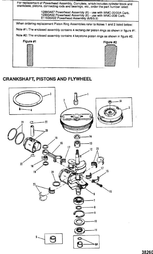 17 | Art.: 31-42076A1 роликовый подшипник в сборе Деталей в узле: 3 18 | Art.: 29-42186 BEARING, Needle, PISTON END Деталей в узле: 48 19 | Art.: Упорный подшипник Деталей в узле: 4 20 | Art.: Поршень в сборе Деталей в узле: 2 21 | Art.: 39-18514A4 Комплект поршневых колец ((CONTAINS 4 KEYSTONE PISTON RINGS AS SHOWN IN FIGURE #2))Деталей в узле: 1 21 | Art.: 39-42079A4 кольцо в сборе ((CONTAINS 4 RECTANGULAR PISTON RINGS AS SHOW IN FIGURE #1))Деталей в узле: 1 снято с производства 22 | Art.: 40-42202 Стопорное кольцо Деталей в узле: 4 снято с производства 23 | Art.: 41373A1 BEARING KIT, Center Main, MAIN BEARING Деталей в узле: 1 24 | Art.: 26-818901 SEAL, MAIN BEARING Деталей в узле: 1 - | силовая головка в сборе ((6)(USE WITH WMC-20/20A CARB.))Деталей в узле: 1 цена по запросу - | силовая головка в сборе ((6) (USE WITH WMC-20B CARB.))Деталей в узле: 1 снято с производства - | силовая головка в сборе ((6/8/9.9))Деталей в узле: 1 снято с производства | ||||||||||||||||||||||||||||||||