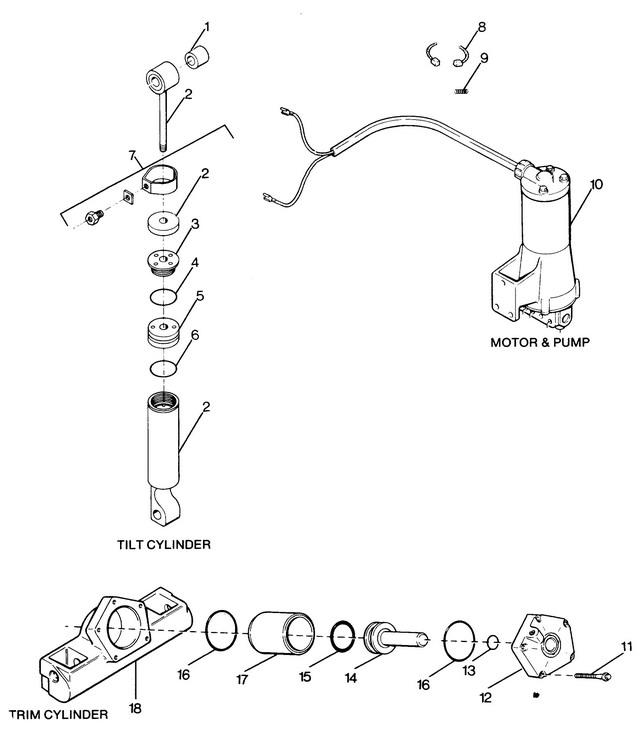 PARTS BREAKDOWN TILT CYLINDER, TRIM CYLINDER, MOTOR and PUMP