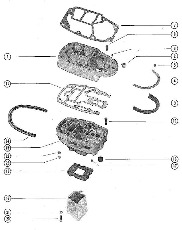 | 1 | PLATE ASSEMBLY, EXHAUST EXTENSION Деталей в узле: 1 снято с производства 2 | Art.: 23-27132 BUSHING, NYLON - EXHAUST EXTENSION PLATE Деталей в узле: 1 3 | Art.: 37918 SEAL, EXHASUT EXTENSION PLATE Деталей в узле: 1 снято с производства 4 | Art.: STRIP (RETAINING - EXHAUST EXTENSION PLATE SEAL)Деталей в узле: 1 снято с производства 5 | Art.: 10-37571 винт (SEAL AND RETAINING STRIP TO EXT. PLATE (1/2"))Деталей в узле: 5 снято с производства 6 | Art.: 17-23784 DOWEL PIN, EXHAUST EXTENSION PLATE Деталей в узле: 2 7 | Art.: GASKET, POWERHEAD TO EXTENSION PLATE Деталей в узле: 1 8 | Art.: 10-66023 SCREW, ADAPTOR PLATE TO HOUSING PLATE (2") Деталей в узле: 2 снято с производства 10 | Art.: 10-66023 SCREW, HOUSING PLATE TO DRIVE SHAFT HSG. (2") Деталей в узле: 7 снято с производства 11 | Art.: GASKET, PLATE TO DRIVE SHAFT HSG. PLATE Деталей в узле: 1 14 | Art.: 26-60898 SEAL, DRIVE SHAFT HOUSING PLATE Деталей в узле: 1 снято с производства 15 | пластина корпуса вертикального вала в сборе Деталей в узле: 1 снято с производства 16 | Art.: 26-38970 Резиновое уплотнение впускной водяной трубы Деталей в узле: 1 17 | Art.: 17-23784 DOWEL PIN, DRIVE SHAFT HOUSING PLATE Деталей в узле: 2 18 | Art.: 27-62362 Прокладка (MEGAPHONE TO DRIVE SHAFT HOUSING PLATE)Деталей в узле: 1 снято с производства 19 | MEGAPHONE, EXHAUST Деталей в узле: 1 снято с производства 20 | Art.: 10-60480 винт (MEGAPHONE TO DRIVE SHAFT HOUSING PLATE (1 1/8"))Деталей в узле: 3 снято с производства 21 | Art.: 12-29245 WASHER, MEGAPHONE SCREW Деталей в узле: 3 цена по запросу
