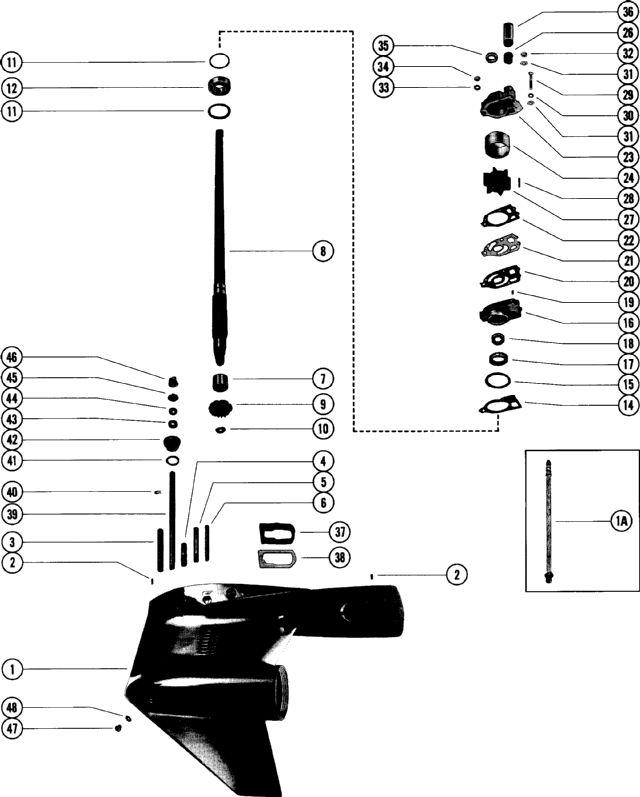 8 | Art.: 45-69250 вертикальный вал (короткий) Деталей в узле: 1 снято с производства 8 | Art.: DRIVE SHAFT (LONG SHAFT Деталей в узле: 1 цена по запросу 9 | Art.: ведущая шестерня вертикального вала Деталей в узле: 1 10 | Art.: 11-35921 гайка крепления ведущей шестерни к вертикальному валу Деталей в узле: 1 11 | Art.: 15-57007A1 SHIM, ROLLER BEARING TO WATER PUMP BASE Деталей в узле: AR цена по запросу
