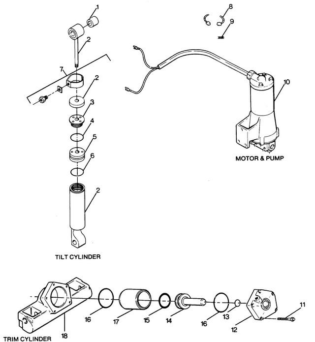 PARTS BREAKDOWN TILT CYLINDER, TRIM CYLINDER, MOTOR and PUMP