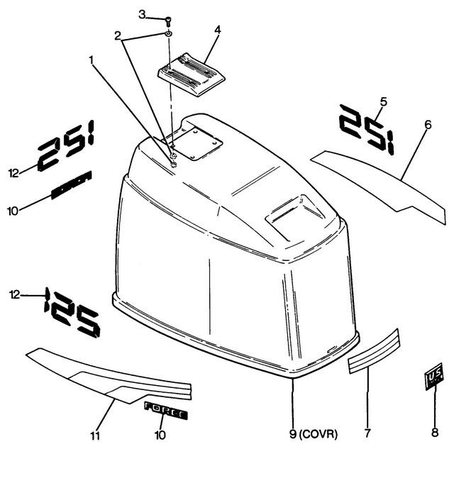 | 1 | Art.: STOP NUT, 1/4 - 20 Деталей в узле: 4 цена по запросу 2 | Art.: шайба Деталей в узле: 8 цена по запросу 3 | Art.: F2143 HEX SOC. HD. SCREW, 1/4 - 20 X 1 S.S. Деталей в узле: 4 4 | HANDLE, TILT Деталей в узле: 1 снято с производства 5 | Art.: FZ686385 DECAL, "125", PORT Деталей в узле: 1 снято с производства 6 | Art.: FZ685397 DECAL, PORT Деталей в узле: 1 снято с производства 7 | Art.: FZ685892 DECAL, FRONT Деталей в узле: 1 снято с производства 8 | Art.: 37-F694366-1 DECAL, "US MARINE" Деталей в узле: 2 снято с производства 9 | ENGINE COVER, (WITHOUT PAINT, DECALS OR HARDWARE) Деталей в узле: 1 |