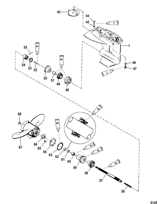 44 | Art.: 10-4000354 Винт (M8 x 30) Деталей в узле: 1 45 | Art.: Шайба (0.323 x 0.563 x 0.063), нержавеющая сталь Деталей в узле: 1 46 | Art.: 12-43328 шайба Деталей в узле: 4 47 | Art.: SCREW, (M10 x 35) Stainless Steel Деталей в узле: 4 48 | Art.: роликовый подшипник в сборе Деталей в узле: 1 49 | Art.: -NSS ке продается по отдельности, крышка Деталей в узле: 1 50 | Art.: 43-44213T1 шестерня переднего хода (27 зубьев) Деталей в узле: 1 51 | Art.: 23-85557 вкладыш Деталей в узле: 1 52 | Art.: 85094 толкатель кулачка Деталей в узле: 1 53 | Art.: 24-38114 Пружина Деталей в узле: 1 54 | Art.: 52-41040T1 муфта сцепления Деталей в узле: 1 55 | Art.: стержень Деталей в узле: 1 56 | Art.: 24-88680 Пружина Деталей в узле: 1 57 | Art.: 44-8166231 вал гребного винта Деталей в узле: 1 58 | Art.: 43-99542T шестерня заднего хода (27 зубьев) Деталей в узле: 1 59 | Art.: 99906T1 подшипник опоры в сборе Деталей в узле: 1 60 | Art.: 31-21739 роликовый подшипник Деталей в узле: 1 61 | Art.: 26-41132 сальник внутренний Деталей в узле: 1 62 | Art.: 26-41131 сальник внешний Деталей в узле: 1 63 | Art.: 25-85549 уплотнительное кольцо Деталей в узле: 1 64 | Art.: 87293 Пластина Деталей в узле: 1 65 | Art.: 10-90883 Винт (M5 x 16) Деталей в узле: 3 66 | Art.: 858498 THRUST HUB ASSEMBLY Деталей в узле: 1 67 | Art.: 48-19638A40 гребной винт ((Sea Pro/Marathon 15/25/Super 15))Деталей в узле: 1 67 | Art.: 48-19640A40 гребной винт Деталей в узле: 1 68 | Art.: 11-88228 Гайка гребного винта Деталей в узле: 1 68 | Art.: 11-4011912 Гайка гребного винта ((Sea Pro/Marathon 15/25/Super 15))Деталей в узле: 1 цена по запросу