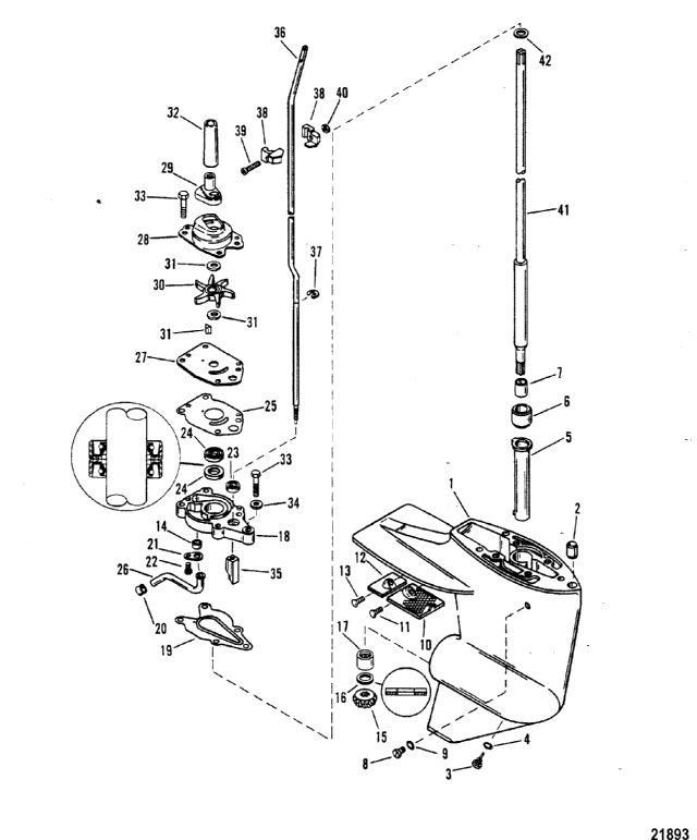 10 | Art.: 35-421991 Экран Деталей в узле: 1 11 | Art.: 10-13954 винт (0.250-14 x 0.88) Деталей в узле: 2 12 | Art.: анод в сборе Деталей в узле: 1 13 | Art.: 10-13954 винт (0.250-14 x 0.88) Деталей в узле: 1 14 | Art.: 26-42133 Уплотнение Деталей в узле: 1 15 | Art.: 43-8219251 ведущая шестерня (13/26) Деталей в узле: 1 16 | Art.: 12-41369 упорная шайба Деталей в узле: 1 17 | Art.: 31-22756 роликовый подшипник Деталей в узле: 1 18 | Art.: основание водяного насоса в сборе Деталей в узле: 1 19 | Art.: Прокладка Деталей в узле: 1 20 | Art.: 26-33613 Уплотнение Деталей в узле: 1 21 | Art.: 42375 фиксатор Деталей в узле: 1 22 | Art.: 10-48408 Винт (#10-16 x 0.500) Деталей в узле: 1 23 | Art.: 25-822236 кольцо с квадратным сечением Деталей в узле: 1 24 | Art.: Сальник Деталей в узле: 2 25 | Art.: прокладка пластины водяного насоса Деталей в узле: 1 26 | Art.: 32-42185A1 Водяная труба в сборе Деталей в узле: 1 27 | Art.: 42200 Пластина основания Деталей в узле: 1 28 | Art.: 46-42089A2 крышка в сборе Деталей в узле: 1 29 | Art.: 26-421021 Уплотнение Деталей в узле: 1 30 | Art.: Крыльчатка Деталей в узле: 1 31 | Art.: шпонка в сборе Деталей в узле: 1 32 | Art.: 44467 Направляющая Деталей в узле: 1 снято с производства 33 | Art.: 10-4000331 SCREW, (M6 x 30), WATER PUMP Деталей в узле: 5 34 | Art.: 12-29245 шайба (0.281 x 0.500 x 0.060) нержавеющая сталь Деталей в узле: 1 35 | Art.: 42039 кулачок механизма переключения передач Деталей в узле: 1 36 | Art.: SHIFT SHAFT (SHORT) Деталей в узле: 1 36 | Art.: SHIFT SHAFT (LONG) Деталей в узле: 1 37 | Art.: 53-42389 Е-обазная стопорная шайба Деталей в узле: 1 38 | Art.: Направляющая Деталей в узле: 2 39 | Art.: винт (M5 x 25) Деталей в узле: 1 40 | Art.: NUT, (M5), GUIDE SCREW Деталей в узле: 1 41 | Art.: 45-823389 вертикальный вал (короткий) Деталей в узле: 1 41 | Art.: 45-823390 вертикальный вал (длинный) Деталей в узле: 1 42 | Art.: 12-822248 упорная шайба Деталей в узле: 1 - | Art.: 26-41365A3 Уплотнительный комплект Деталей в узле: 1 - | Art.: 27-42364A92 Набор прокладок двигателя Деталей в узле: 1 - | Art.: GEAR HOUSING ASSEMBLY, COMPLETE (SHORT)- BLACK Деталей в узле: 1 - | Art.: GEAR HOUSING ASSEMBLY, COMPLETE (LONG) BLACK Деталей в узле: 1 - | Art.: GEAR HOUSING ASSEMBLY, COMPLETE (SHORT)- GRAY Деталей в узле: 1 снято с производства - | Art.: GEAR HOUSING ASSEMBLY, COMPLETE (LONG) GRAY Деталей в узле: 1 не посталяется заказывайте 8833T15 - | Art.: 46-42089A5 комплект водяного насоса Деталей в узле: 1 | |||||||||||||||||||||||||||||||||||||||||||||||||||||