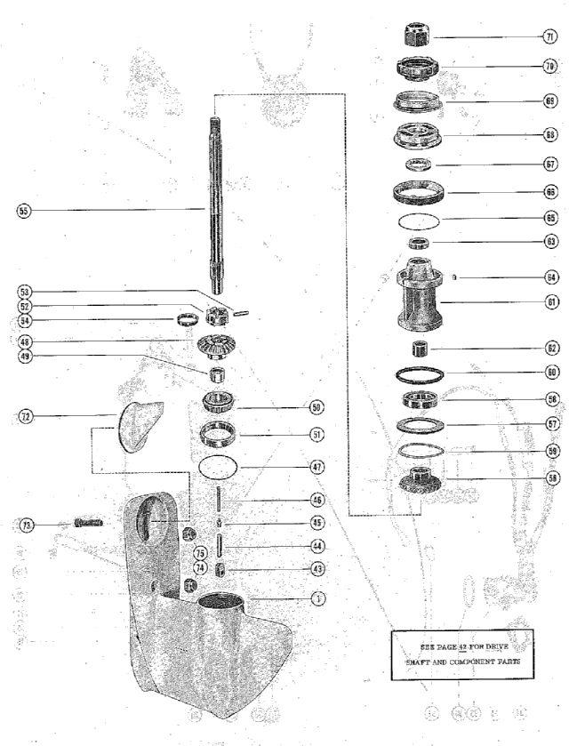 | 1 | Art.: 1626-2040A1 GEAR HOUSING ASSEMBLY(SEE PAGE 42 FOR PARTS BREAKDOWN) Деталей в узле: 1,1,1,1 снято с производства 43 | кулачок механизма переключения передач Деталей в узле: 1,1,1,1 цена по запросу 44 | Art.: 20930 FOLLOWER,CAM Деталей в узле: 1,1,1,1 снято с производства 45 | Art.: 20843 SLIDEE,CROSS PIN Деталей в узле: 1,1,1,1 46 | Art.: 24-20254 SPRING,COMPRESSION - CAM FOLLOWER Деталей в узле: 1,1,1,1 снято с производства 47 | Art.: 15-31154A1 регулировочная прокладка между крышкой подшипника и корпусом редуктора Деталей в узле: AR,AR,AR,A снято с производства 48 | Art.: Шестерня переднего хода в сборе Деталей в узле: 1,1,1,1 снято с производства 49 | Art.: 31-20249 роликовый подшипник шестерни переднего хода в сборе Деталей в узле: 1,1,1,1 50 | Art.: 31-31215A1 конический роликовый подшипник в сборе Деталей в узле: 1,1,1,1 снято с производства 51 | Art.: 31-31216 крышка конического роликового подшипника Деталей в узле: 1,1,1,1 снято с производства 52 | Art.: 52-32189 RATCHET,SLIDING CLUTCH Деталей в узле: 1,1,1,1 снято с производства 53 | Art.: 17-20841 поперечный штифт крепления храповика к валу гребного винта Деталей в узле: 1,1,1,1 снято с производства 54 | Art.: 53-20842 стопорное кольцо поперечного штифта Деталей в узле: 1,1,1,1 снято с производства 55 | Art.: 44-32000 вал гребного винта Деталей в узле: 1,1,1,1 снято с производства 56 | Art.: шестерня заднего хода в сборе Деталей в узле: 1,1,1,1 снято с производства 57 | Art.: 12-32004 упорная шайба шестерни заднего хода Деталей в узле: 1,1,1,1 снято с производства 58 | Art.: шариковый подшипник шестерни заднего хода Деталей в узле: 1,1,1,1 59 | Art.: 15-20927A1 регулировочная прокладка между упорной шайбой и корпусом редуктора Деталей в узле: AR,AR,AR,A снято с производства 60 | Art.: 25-31986 уплотнительное кольцо подшипника опоры Деталей в узле: 1,1,1,1 61 | подшипник опоры в сборе Деталей в узле: 1,1,1,1 цена по запросу 62 | Art.: 31-20249 роликовый подшипник подшипника опоры Деталей в узле: 1,1,1,1 63 | Art.: сальник подшипника опоры Деталей в узле: 1,1,1,1 цена по запросу 64 | Art.: 28-30281 KEY,LOCATING - BEARING CARRIER Деталей в узле: 1,1,1,1 65 | Art.: 12-31993 шайба крышки корпуса редуктора Деталей в узле: 1,1,1,1 снято с производства 66 | Art.: крышка корпуса редуктора Деталей в узле: 1,1,1,1 цена по запросу 67 | Art.: 12-25251 WASHER,BACKING - PROPELLER SHAFT(1/8) Деталей в узле: 1,1,1,1 снято с производства 68 | Art.: THRUSTT HUB AND WAHSER ASSEMBLY Деталей в узле: 1,1,1,1 69 | Art.: 12-31992 WASHER,CUPPED - THRUST HUB Деталей в узле: 1,1,1,1 70 | Art.: 12-32007 WASHER,SPLINED - PROPELLER SHAFT Деталей в узле: 1,1,1,1 снято с производства 71 | Art.: гайка гребного винта Деталей в узле: 1,1,1,1 72 | триммер корпуса редуктора Деталей в узле: 1,1,1,1 цена по запросу 73 | Art.: 10-32470 винт крепления триммера к корпусу редуктора Деталей в узле: 1,1,1,1 74 | Art.: гайка шпильки крепления корпуса вертикального вала к корпусу редуктора (7/16") Деталей в узле: 1,1,1,1 цена по запросу 75 | Art.: 11-23161 гайка шпильки крепления корпуса вертикального вала к корпусу редуктора (3/8") Деталей в узле: 1,1,1,1 - | Art.: 1626-2040A3 GEAR HOUSING ASSY.COMP.(STANDARD)-SEE NOTE BELOW Деталей в узле: 1,1,1,1 снято с производства | ||||||||||||||||||||||||||||||||||||