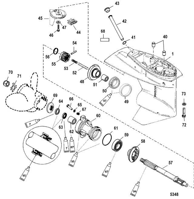 58 | Art.: 43-822163T1 шестерня заднего хода (22 зуба) Деталей в узле: 1 59 | Art.: 30-20839T Шариковый подшипник Деталей в узле: 1 60 | Art.: подшипник опоры в сборе Деталей в узле: 1 61 | Art.: 25-815460 уплотнительное кольцо Деталей в узле: 1 62 | Art.: 31-21700 Игольчатый подшипник Деталей в узле: 1 63 | Art.: Сальник Деталей в узле: 1 64 | Art.: Сальник Деталей в узле: 1 65 | Art.: 12-855941 шайба (.323 x .590 x .112) нержавеющая сталь ((Use with Threaded Insert))Деталей в узле: 2 65 | Art.: Шайба (0.323 x 0.563 x 0.063), нержавеющая сталь Деталей в узле: 2 66 | Art.: 10-85594030 Винт (M8 x 30) ((Use with Threaded Insert))Деталей в узле: 2 66 | Art.: 10-4000353 Винт (M8 x 25) Деталей в узле: 2 67 | Art.: 8227731 Вкладыш резьбовой Деталей в узле: 2 68 | Art.: -NSS не продается по отдельности, наклейка "1.83:1" (12 X 22) Деталей в узле: 1 69 | Art.: 73345A1 упорная втулка Деталей в узле: 1 70 | Art.: 11-69578Q1 Комплект гаек гребного винта Деталей в узле: 1 71 | Art.: стопорная шайба Деталей в узле: 1 72 | Art.: 10-4000380 Винт (М10 х 45) Деталей в узле: 4 73 | Art.: 12-856774 Шайба (0.406 x 0.750 x 0.105), нержавеющая сталь Деталей в узле: 4 цена по запросу