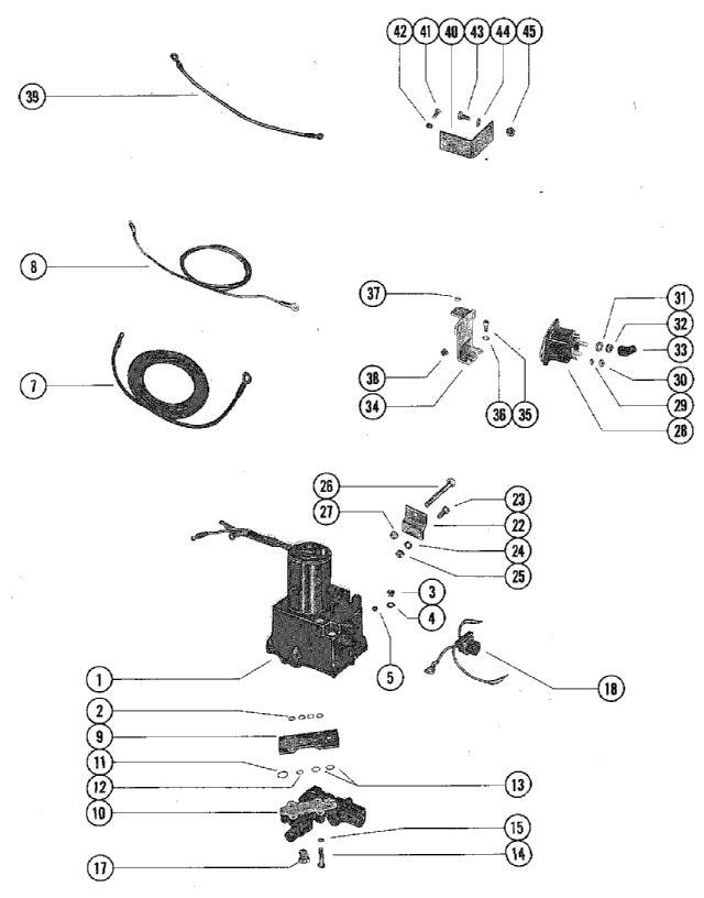 | 1 | Гидравлический насос в сборе ((SEE NOTE BELOW))Деталей в узле: 1 цена по запросу 2 | Art.: "O" RING, HYDRAULIC PUMP TO MANIFOLD PLATE Деталей в узле: 4 цена по запросу 3 | Art.: SCREW, FILLER - HYDRAULIC PUMP Деталей в узле: 1 цена по запросу 4 | Art.: шайба (SEALING - HYDRAULIC PUMP FILLER SCREW)Деталей в узле: 1 цена по запросу 5 | Art.: SCREW, VENT - HYDRAULIC PUMP Деталей в узле: 1 цена по запросу 7 | Art.: 32979 BATTERY LEAD (POSITIVE) Деталей в узле: 1 снято с производства 8 | Art.: 32988 BATTERY LEAD (NEGATIVE) Деталей в узле: 1 снято с производства 9 | Art.: 45336 пластина коллектора Деталей в узле: 1 снято с производства 10 | Art.: 45197A2 управляющий клапан в сборе Деталей в узле: 1 снято с производства 10 | Art.: Уплотнительное кольцо (PUMP TO MANIFOLD PLATE (SEE REFERENCE #2))Деталей в узле: 4 цена по запросу 11 | Art.: 25-45254 Уплотнительное кольцо (CONTROL VALVE TO MANIFOLD PLATE (3/4" O.D.))Деталей в узле: 1 12 | Art.: Уплотнительное кольцо (CONTROL VALVE TO MANIFOLD PLATE (1/2" O.D.))Деталей в узле: 1 цена по запросу 13 | Art.: 25-45253 Уплотнительное кольцо (CONTROL VALVE TO MANIFOLD PLATE (5/8" O.D.))Деталей в узле: 2 14 | Art.: 10-56500 винт (VALVE AND MANIFOLD PLATE TO PUMP (1 1/4"))Деталей в узле: 4 15 | Art.: 13-26992 стопорная шайба (CONTROL VALVE AND MANIFOLD PLATE SCREW)Деталей в узле: 4 17 | Art.: 22-46008 PLUG, CONTROL VALVE (1/2-20") Деталей в узле: 2 18 | Art.: CONNECTOR AND HARNESS Деталей в узле: 1 снято с производства 22 | Art.: кронштейн (MOUNTING - HYDRAULIC PUMP TO BOAT)Деталей в узле: 2 снято с производства 23 | Art.: винт (MOUNTING BRACKET TO HYDRAULIC PUMP (1"))Деталей в узле: 4 цена по запросу 24 | Art.: 13-39107 стопорная шайба винта крепления кронштейна Деталей в узле: 4 25 | Art.: 11-21908 гайка винта крепления кронштейна Деталей в узле: 4 26 | Art.: 10-68298 BOLT, HYDRAULIC PUMP TO BOAT (3 1/4") Деталей в узле: 2 снято с производства 27 | Art.: NUT, HYDRAULIC PUMP BOLT Деталей в узле: 2 28 | Соленоид стартера Деталей в узле: 2 29 | Art.: 13-26996 стопорная шайба (STARTER SOLENOID TERMINAL (#10))Деталей в узле: 4 30 | Art.: 11-68219 NUT, STARTER SOLENOID TERMINAL (#10) Деталей в узле: 4 31 | Art.: 13-26993 стопорная шайба (STARTER SOLENOID TERMINAL (5/16"))Деталей в узле: 4 цена по запросу