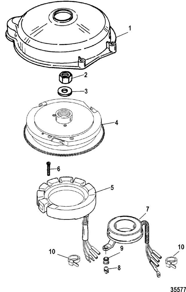 | 1 | Art.: 812777T1 крышка в сборе Деталей в узле: 1 2 | Art.: 11-42979 гайка (М16) Деталей в узле: 1 3 | Art.: шайба (0.641 x 1.250 x 0.190) Деталей в узле: 1 цена по запросу 4 | маховик Деталей в узле: 1 5 | Art.: IGNITION STATOR KIT Деталей в узле: 1 6 | Art.: винт (M5 x 30) Деталей в узле: 4 7 | Art.: 854512T пусковая катушка Деталей в узле: 1 8 | Art.: 93421 подшипник поворотного кронштейна Деталей в узле: 1 9 | Art.: 93254 основа поворотного кронштейна Деталей в узле: 1 10 | Art.: ленточный хомут (8") Деталей в узле: 2 | |||||||||||