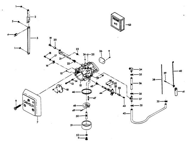 22 | Art.: FO16143 THROTTLE SHAFT RETURN SPRING Деталей в узле: 1 23 | Art.: STOP NUT, 8 - 32 Деталей в узле: 1 24 | Art.: FO10588 BODY CHANNEL CUP PLUG Деталей в узле: 5 25 | Art.: FO16128 BODY CHANNEL WELCH PLUG Деталей в узле: 1 26 | Art.: FO16142 заслонка дросселя Деталей в узле: 1 снято с производства 29 | Art.: FO16620 "E" RING Деталей в узле: 1 снято с производства 30 | Art.: шплинт Деталей в узле: 2 цена по запросу 31 | Art.: PLAIN WASHER Деталей в узле: 3 цена по запросу 32 | Art.: "O" RING SEAL Деталей в узле: 5 цена по запросу 33 | Art.: F184033-1 SWIVEL, TOP CARBURETOR Деталей в узле: 1 снято с производства 34 | Art.: F84314-2 колено Деталей в узле: 1 снято с производства 35 | Art.: зажим Деталей в узле: 4 цена по запросу 36 | Топливопровод Деталей в узле: 1 цена по запросу 37 | Art.: FUEL FITTING Деталей в узле: 1 38 | Art.: F85509-1 LINK CHOKE Деталей в узле: 1 снято с производства 39 | Art.: F2033 GROOVE PIN Деталей в узле: 1 снято с производства 40 | Art.: F440925 тяга диффузора Деталей в узле: 1 снято с производства 41 | Art.: F391926-1 плунжер Деталей в узле: 1 снято с производства 42 | Топливопровод Деталей в узле: 1 снято с производства 43 | Art.: F1059 FILL HD SCREW, 6 - 32 X 1/4 Деталей в узле: 2 снято с производства 44 | Art.: FO16301 вал воздушной заслонки и рычаг Деталей в узле: 1 снято с производства 45 | Art.: FO17885 CHOKE SHAFT RETURN SPRING Деталей в узле: 1 46 | Art.: FO15623 FUEL BOWL GASKET Деталей в узле: 1 47 | Art.: FO16697 INLET NEEDLE Деталей в узле: 1 снято с производства 48 | Art.: поплавок Деталей в узле: 1 49 | Art.: FO13944 FLOAT LEVER PIN Деталей в узле: 1 50 | Art.: FO16133 главный распылитель Деталей в узле: 1 51 | Art.: FO16130 камера топливной смеси Деталей в узле: 1 52 | Art.: FO5323 FUEL BOWL RETAINING SCREW GASKET Деталей в узле: 2 53 | Art.: Комплект запасных частей (INCLUDES ALL ITEMS MARKED WITH AN ASTERISK (*).)Деталей в узле: 1 |