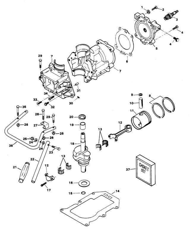 4 | Art.: F1426 SCREW, HEX HD 1/4 - 20 X 7/16 Деталей в узле: 2 снято с производства 5 | Art.: F521518 HEAD, CYLINDER Деталей в узле: 1 снято с производства 6 | Art.: прокладка головки блока Деталей в узле: 1 7 | Art.: CYLINDER ASSEMBLY W/CRANKCASE COVER, DOWEL PINS & SCREWS Деталей в узле: 1 снято с производства 8 | Art.: 39-818038A1 RING SET, PISTON (2 RINGS) Деталей в узле: 2 снято с производства 9 | Art.: F250410 стопорное кольцо поршневого пальца Деталей в узле: 2 снято с производства 10 | Art.: F250017 поршневой палец Деталей в узле: 1 снято с производства 11 | Art.: Поршень Деталей в узле: 1 цена по запросу 12 | Art.: F2A521016 ROD, CONNECTING W/SCREWS AND BEARINGS Деталей в узле: 1 снято с производства 13 | Art.: FA567241 BEARING ASSEMBLY, W/CAGE AND ROLLERS Деталей в узле: 2 снято с производства 14 | Art.: GASKET, CYLINDER EXHAUST Деталей в узле: 1 цена по запросу 15 | Art.: F521579 SEAL, SPLINE, CRANKSHAFT Деталей в узле: 1 снято с производства 16 | Art.: SEAL, CRANKSHAFT, LOWER Деталей в узле: 1 снято с производства 17 | Art.: F36634 Винт шатуна Деталей в узле: 2 снято с производства 18 | Art.: F2A521018 CRANKSHAFT ASSEMBLY W/SLINGER AND LOWER BEARING Деталей в узле: 1 снято с производства 19 | Art.: F521013 BEARING, CRANKSHAFT, UPPER Деталей в узле: 1 снято с производства 20 | Art.: SEAL, CRANKSHAFT, UPPER Деталей в узле: 1 цена по запросу 21 | Art.: F211137-1 рукоятка ручки рулевого управления Деталей в узле: 1 снято с производства 22 | Art.: F601079 Ручка рулевого управления Деталей в узле: 1 снято с производства 23 | Art.: F1893 SCREW 5/16 - 18 X 1 1/2 Деталей в узле: 1 снято с производства 24 | Art.: шайба Деталей в узле: 2 цена по запросу 25 | Art.: F2108 NUT, LOCK 5/16 - 18 Деталей в узле: 1 снято с производства 26 | Art.: F7019 NUT, LOCK 1/4 - 20 Деталей в узле: 4 снято с производства 27 | Art.: F601078 BRACKET, STEERING HANDLE STOP Деталей в узле: 1 снято с производства 28 | Art.: F1891 SCREW 1/4 - 20 X 1 1/2 Деталей в узле: 1 снято с производства 29 | Art.: F1699 SCREW 1/4 - 20 X 1 1/8 Деталей в узле: 2 снято с производства 30 | Art.: F1789 заглушка трубки Деталей в узле: 1 снято с производства 31 | Art.: F8559 посадочный штифт Деталей в узле: 2 цена по запросу