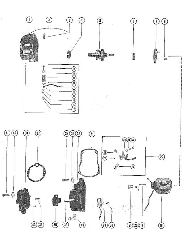 | 1 | Art.: 394-1570 FRAME, MAGNETO HOUSING Деталей в узле: 1,1,1,1 снято с производства 2 | Art.: 10-25510 SCRE, SET - COIL BRIDGE Деталей в узле: 2,2,2,2 снято с производства 3 | Art.: 394-1051 LOCKWIRE, COIL BRIDGE SET SCREW Деталей в узле: 1,1,1,1 снято с производства 4 | Art.: 30-24998 BEARING, BALL (DRIVE END) Деталей в узле: 1,1,1,1 снято с производства 5 | Art.: MAGNETIC ROTOR AND SHAFT Деталей в узле: 1,1,1,1 снято с производства 6 | Art.: BEARING, BALL (OPPOSITE DRIVE END) Деталей в узле: 1,1,1,1 цена по запросу 7 | Art.: 394-1637 держатель шарикового подшипника Деталей в узле: 1,1,1,1 снято с производства 8 | Art.: 10-25509 SCREW AND LOCKWASHER, SUPPORT TO FRAME Деталей в узле: 3,3,3,3 снято с производства 9 | Art.: WIRE ASSEMBLY, PRIMARY GROUND LEAD Деталей в узле: 1,1,1,1 снято с производства 10 | Art.: 10-29182 SCREW, PRIMARY GROUND (#10) Деталей в узле: 1,1,1,1 снято с производства 11 | Art.: 12-30267 WASHER, PRIMARY GROUND TERMINAL Деталей в узле: 1,1,1,1 снято с производства 12 | Art.: 394-1579 INSULATOR, PRIMARY GROUND TERMINAL Деталей в узле: 1,1,1,1 снято с производства 13 | Art.: 12-29099 WASHER, INSULATING - PRIMARY GROUND SCREW Деталей в узле: 1,1,1,1 снято с производства 14 | Art.: BUSHING, INSULATING - HOUSING FRAME Деталей в узле: 1,1,1,1 цена по запросу 15 | Art.: 12-26014 WASHER, PRIMARY GROUND SCREW Деталей в узле: 1,1,1,1 снято с производства 16 | Art.: 11-24656 NUT, LOCK - PRIMARY GROUND SCREW Деталей в узле: 1,1,1,1 снято с производства 17 | Art.: NUT, PRIMARY GROUND SCREW Деталей в узле: 1,1,1,1 цена по запросу 18 | Art.: 394-1128A1 катушка зажигания в сборе Деталей в узле: 1,1,1,1 снято с производства 19 | Art.: 394-1050 CLIP, COIL - HIGH TENSION Деталей в узле: 1,1,1,1 снято с производства 20 | Art.: 13-23836 LOCKWASHER, COIL TERMINAL Деталей в узле: 1,1,1,1 снято с производства 21 | Art.: 394-1131 NUT, COIL CLIP FASTENING Деталей в узле: 1,1,1,1 снято с производства 22 | BREAKER ASSEMBLY Деталей в узле: 1,1,1,1 снято с производства 23 | Art.: 393-1586 GROMMET, PLASTIC - BREAKER BRACKET Деталей в узле: 1,1,1,1 снято с производства 24 | Art.: 16-29230 STUD, PRIMARY LEAD AND TENSION SPRING Деталей в узле: 1,1,1,1 снято с производства 25 | Art.: 11-29236 NUT, PRIMARY LEAD FASTENING Деталей в узле: 1,1,1,1 снято с производства 26 | Art.: 394-1106A1 HOLDER AND CAM WICK ASSEMBLY Деталей в узле: 1,1,1,1 снято с производства 27 | Art.: 53-21058 "E" RING, BREAKER TO PIVOT PIN Деталей в узле: 1,1,1,1 снято с производства 28 | Art.: 10-20597 SCREW, BREAKER HOLDER TO HOUSING Деталей в узле: 1,1,1,1 29 | Art.: конденсатор Деталей в узле: 1,1,1,1 30 | Art.: 10-25509 SCREW AND LOCKWASHER, CONDENSER FASTENING Деталей в узле: 1,1,1,1 снято с производства 31 | Art.: 27-29166 GASKET, MAGNETO COVER Деталей в узле: 1,1,1,1 цена по запросу