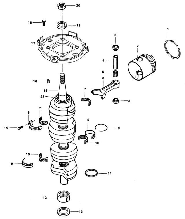 8 | Art.: F85410 стопорное кольцо Деталей в узле: 3 снято с производства 9 | Art.: CRANKSHAFT MAIN BEARING RACE W/SNAP RING Деталей в узле: 3 10 | Art.: BEARING CAGE W/ROLLER Деталей в узле: 3 снято с производства 11 | Art.: F316579 SEAL, CRANKCASE Деталей в узле: 3 12 | CRANKSHAFT LOWER MAIN BEARING (W/ILLUS. 13)Деталей в узле: 1 цена по запросу