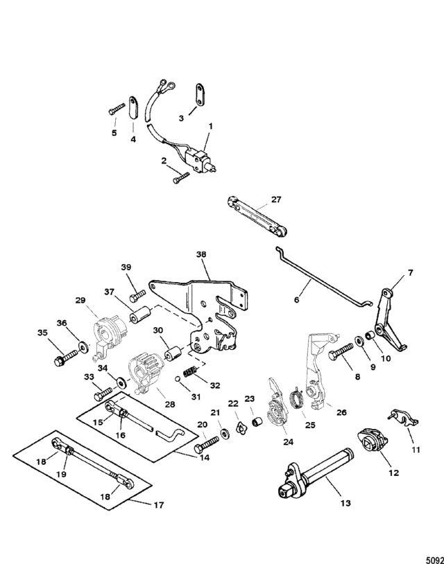 дроссель и приводная штанга механизма переключения передач (переключение передач на румпеле)