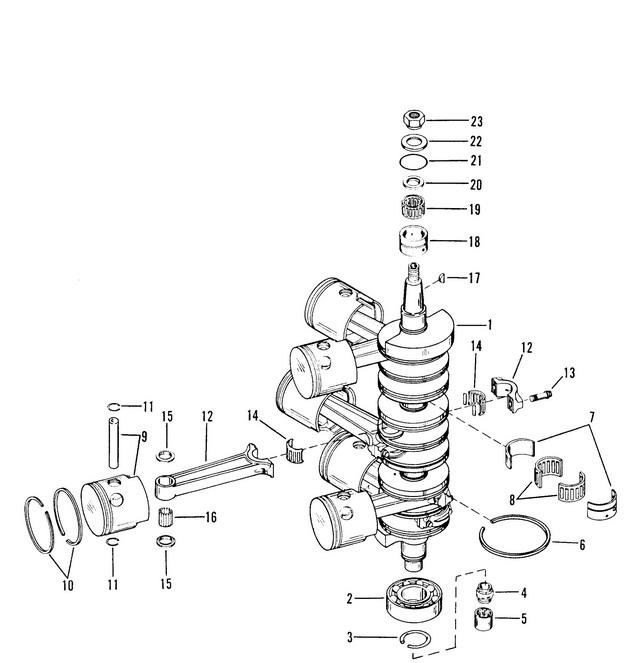 | 1 | Art.: Коленчатый вал в сборе Деталей в узле: 1 снято с производства 2 | Art.: BALL BERING, CRANKSHAFT (LOWER) Деталей в узле: 1 снято с производства 3 | Art.: 53-89531 стопорное кольцо шарикового подшипника Деталей в узле: 1 4 | Art.: 89938 SEAL, CRANKSHAFT/DRIVERSHAFT Деталей в узле: 1 снято с производства 5 | Art.: 89939 SEAT, CRANKSHAFT/DRIVERSHAFT Деталей в узле: 1 снято с производства 6 | Art.: RING, SEALING - CRANKSHAFT 9 Деталей в узле: снято с производства 7 | Art.: BEARING RACE, CENTER MAIN Деталей в узле: 2 снято с производства 8 | Art.: главный центральный роликовый подшипник Деталей в узле: 2 9 | Art.: 769-8179A10 Правый поршень в сборе Деталей в узле: 3 снято с производства 9 | Art.: 769-8180A10 Левый поршень в сборе Деталей в узле: 3 снято с производства 10 | Art.: 39-42011A12 поршневое кольцо в сборе Деталей в узле: 1 снято с производства 11 | Стопорное кольцо поршневого пальца Деталей в узле: 12 цена по запросу 12 | Art.: шатун в сборе Деталей в узле: 6 снято с производства 13 | Art.: 10-94320 Винт шатунный (резьба 3/8-24) Деталей в узле: 12 14 | Art.: ROLLER BEARING ASSEMBLY, CRANKSHAFT END Деталей в узле: 6 снято с производства 15 | Art.: 12-88263 WAHER, NEEDLE LOCATING Деталей в узле: 12 16 | Art.: Игольчатый подшипник верхней головки шатуна Деталей в узле: 204 цена по запросу